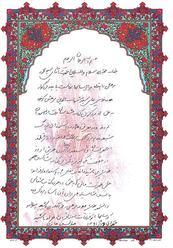 جناب حجت الاسلام و المسلمین حضرت آقای سید محمد مرعشی دام بقاه براثر سالها مجالست با پدر بزرگوار علامه خویش آقای سید شهاب الدین مرعشی-که خود به حق از بزرگترین کتابشناسان وقت و دانشمندان بودند و در معرّفی علما و دانشمندان بزرگ شیعه قدم بزرگ برداشته بودند- و در اثر تلمّذ در محضر ایشان و با استعداد خدادادی خویش امروز در حقیقت یکی از بزرگترین کتابشناسان عصر خویش می باشید و اینجانب مفتخرم به استفاده از فوائد علمی حضرت عالی که به حق در حوزه کتابشناسی جانشین شایسته ای برای آن استاد بزرگ و پدر دانشمند خویش علامه مرعشی رحمه الله علیه می باشید . امیدوارم که سالها با توفیقات روز افزون همراه باشید .